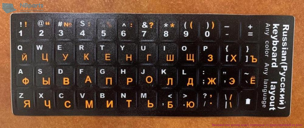 Наклейки на клавиатуру черные, русский шрифт - оранжевый, латиница - черный