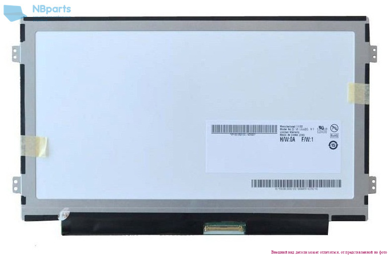 Матрица B101AW06 V.1, 1024x600 WSVGA, LVDS (1 ch, 6-bit), 40 pins, TN, глянцевая, уши право - лево